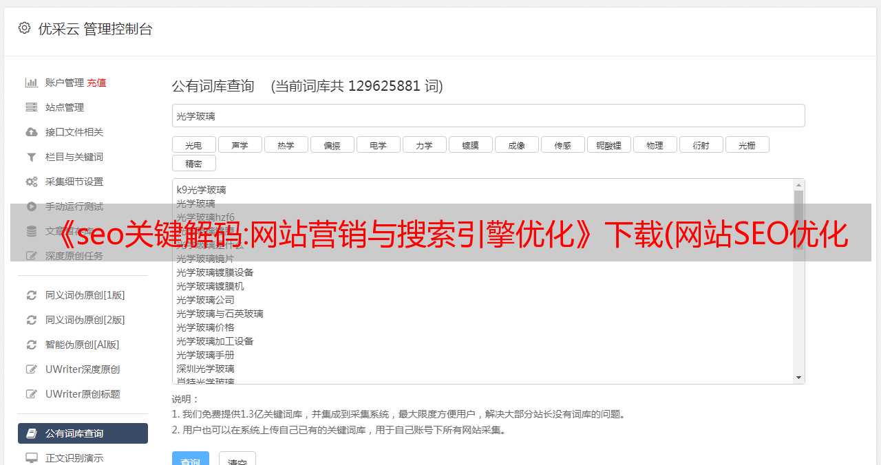 优采云 发布时间: 2021-09-25 20:07《seo关键解码:网站营销与搜索引擎优化》下载(网站SEO优化的重中之重与基本工作中的品质度拥有关键