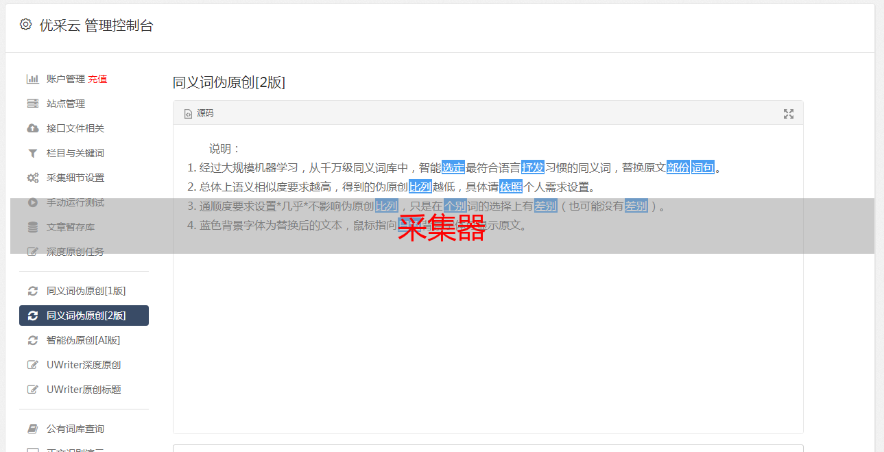 智能采集集成于手工采集中,您只需将采集的地址填入地址框,然后点击递交即可。