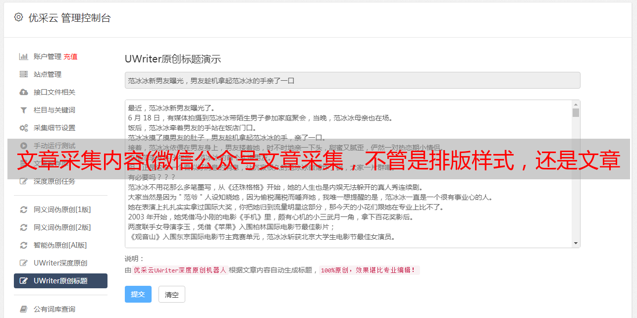 优采云 发布时间: 2021-09-26 18:31文章采集内容(微信公众号文章采集,不管是排版样式,还是文章内容)