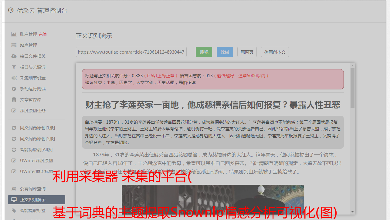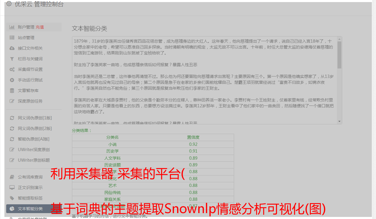 利用采集器 采集的平台( 基于词典的主题提取Snownlp情感分析可视化(图) )