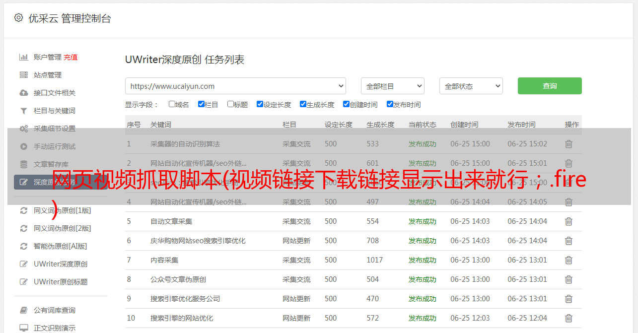 优采云 发布时间: 2021-09-27 06:03网页视频抓取脚本(视频链接下载链接显示出来就行;.fire