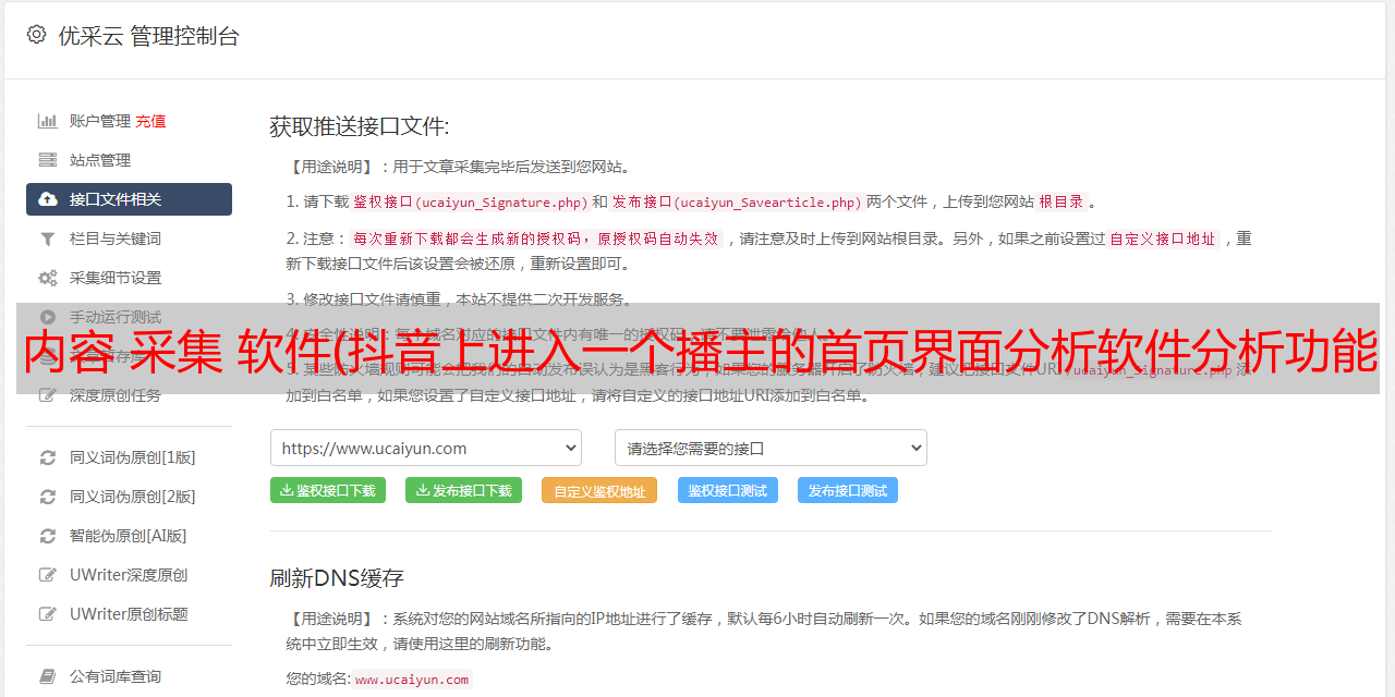 内容 采集 软件(抖音上进入一个播主的首页界面分析软件分析功能介绍 )