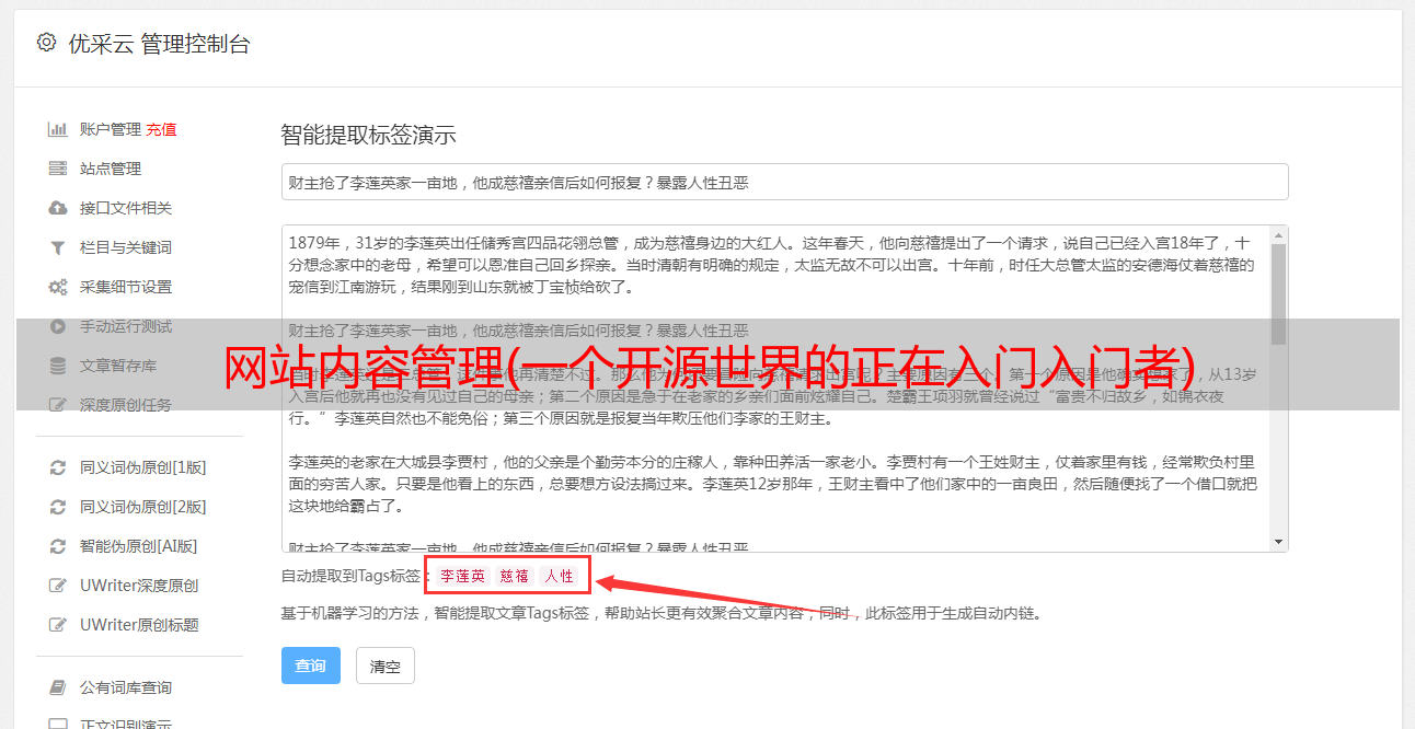 优采云 发布时间: 2021-09-27 20:23网站内容管理(一个开源世界的正在入门入门者)