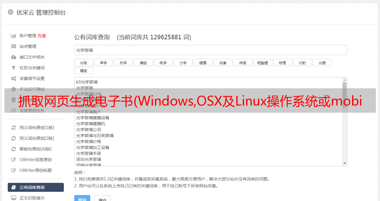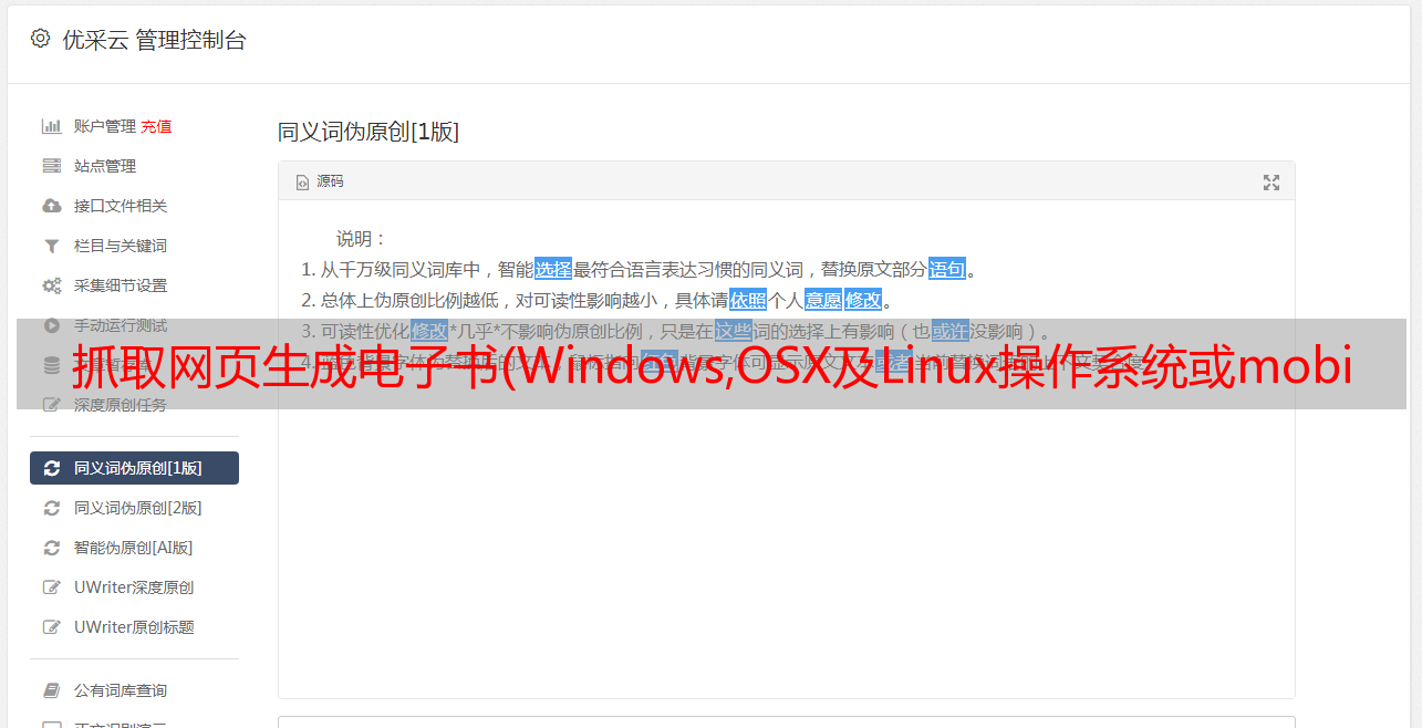 优采云 发布时间: 2021-09-28 02:12抓取网页生成电子书(Windows,OSX及Linux操作系统或mobi格式的在线阅读)