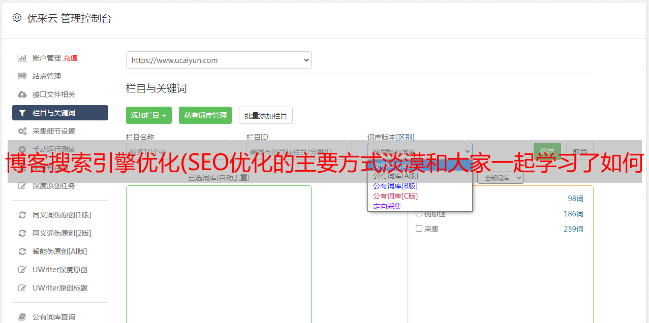 3. <a href='https://www.ucaiyun.com/caiji/public_dict/' target='_blank'>关键词 优化