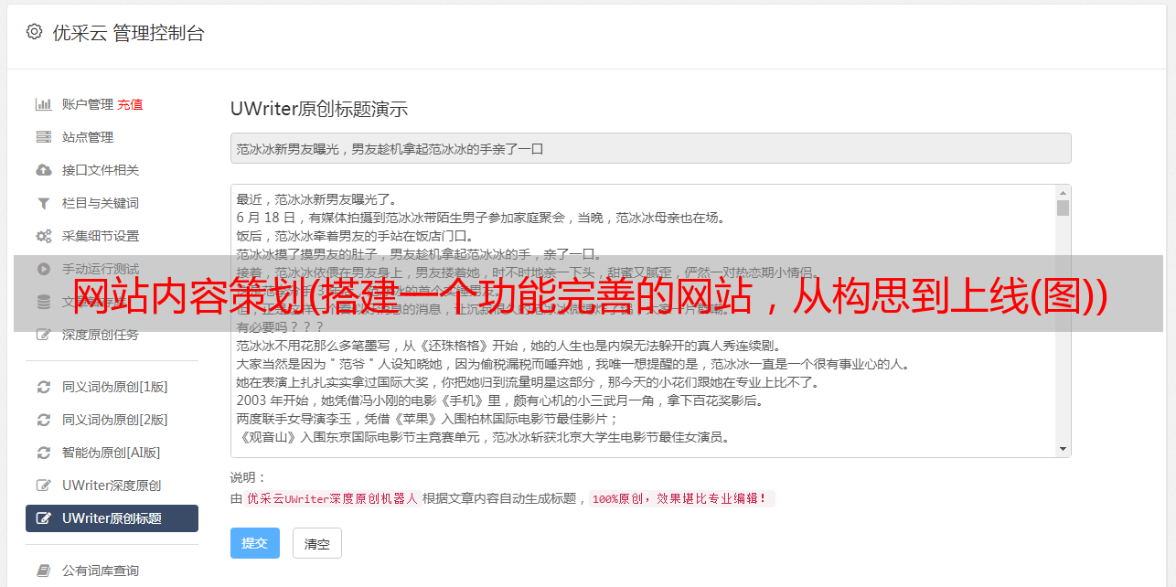 优采云 发布时间: 2021-09-28 18:10网站内容策划(搭建一个功能完善的网站,从构思到上线(图))