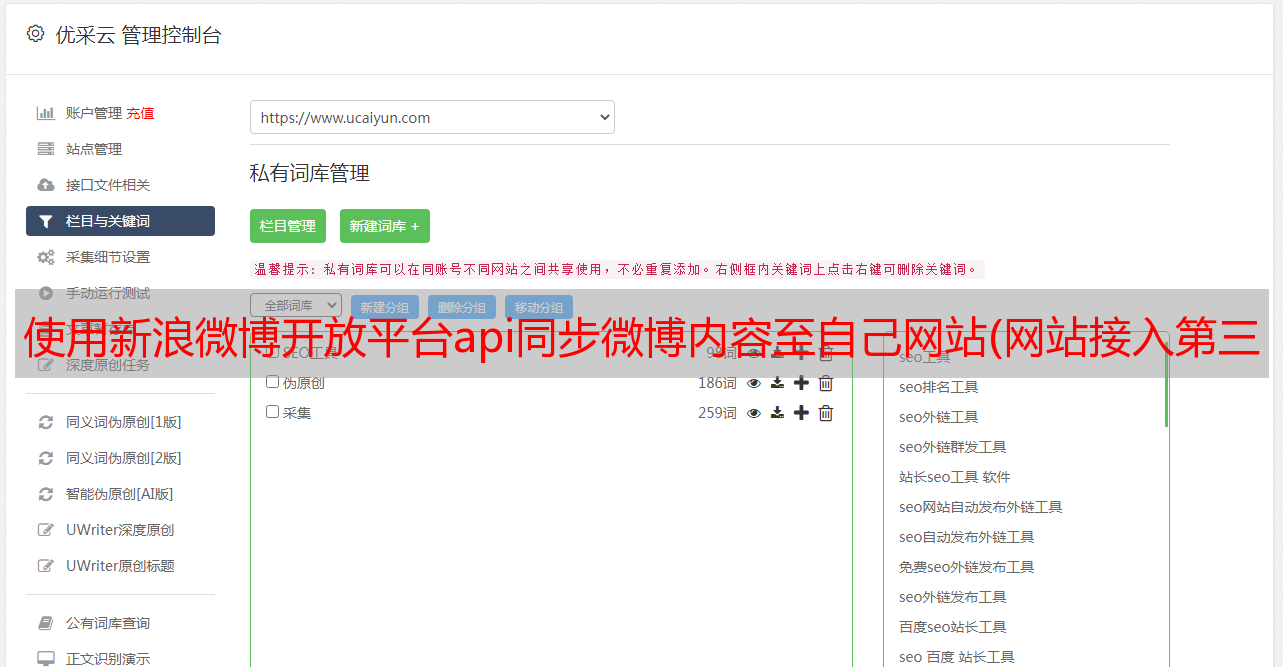 优采云 发布时间: 2021-09-28 19:28使用新浪微博开放平台api同步微博内容至自己网站(网站接入第三方平台登录--QQ篇网站登录平台)