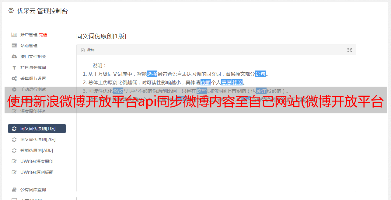 优采云 发布时间: 2021-09-28 19:30使用新浪微博开放平台api同步微博内容至自己网站(微博开放平台开发记录方便查用(图)名词介绍)