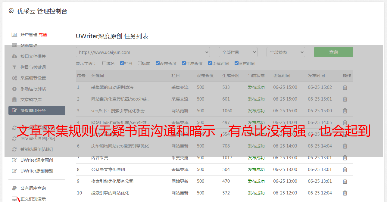 对于采集来说,最怕的就是被对手搞清楚你的习惯,尤其是白天充足的时候。很多人喜欢白天定时定量更新文章,却被别人盯上。突然文章被带走了,结果搜索引擎分不清原创的作者是谁。但是到了晚上就不一样了。很少有人总是在半夜等你网站,而且据说这个时候蜘蛛比较勤奋,更有利于蜘蛛的捕捉。