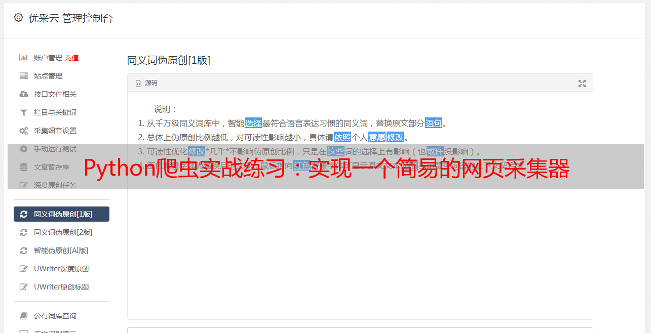 优采云 发布时间: 2020-08-27 11:34Python爬虫实战练习:实现一个简易的网页采集器