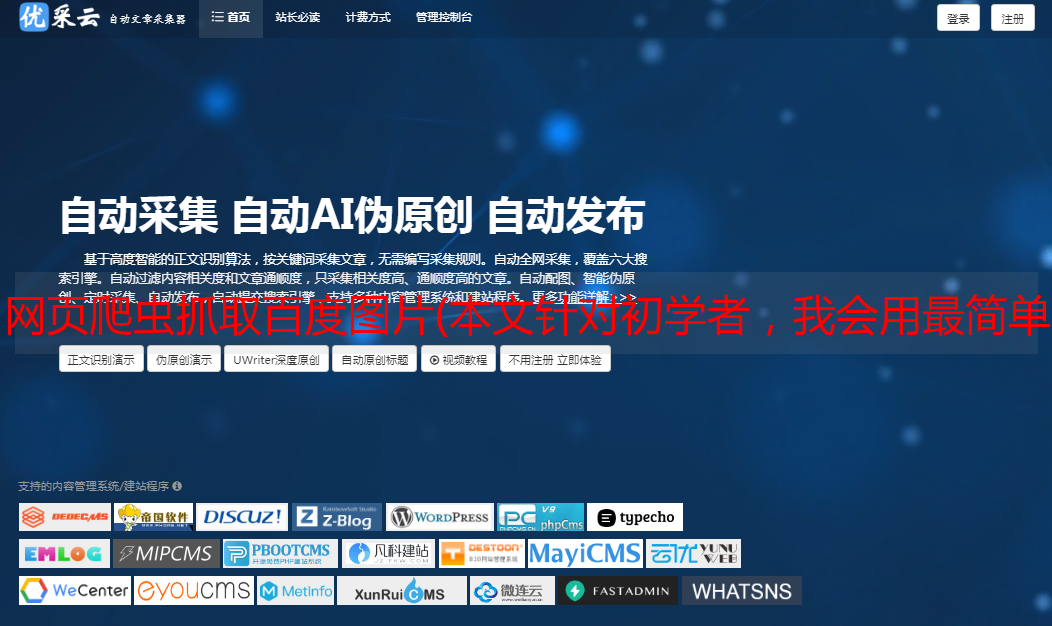优采云 发布时间: 2021-09-30 02:11网页爬虫抓取百度图片(本文针对初学者,我会用最简单的案例告诉你如何入门python爬虫