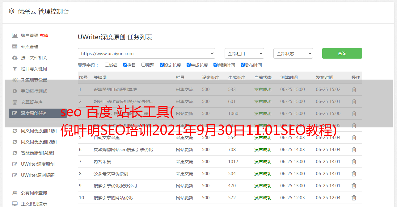优采云 发布时间: 2021-09-30 17:19seo 百度 站长工具(