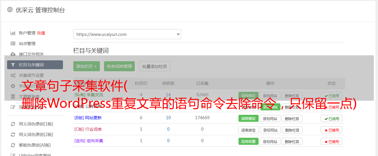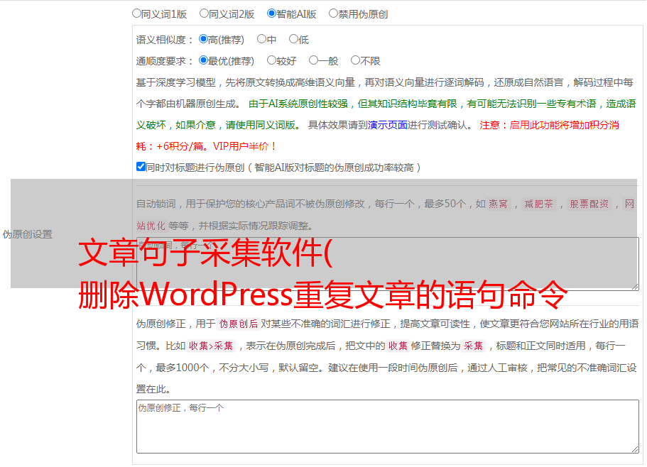 文章句子采集软件( 删除WordPress重复文章的语句命令去除命令,只保留一点)
