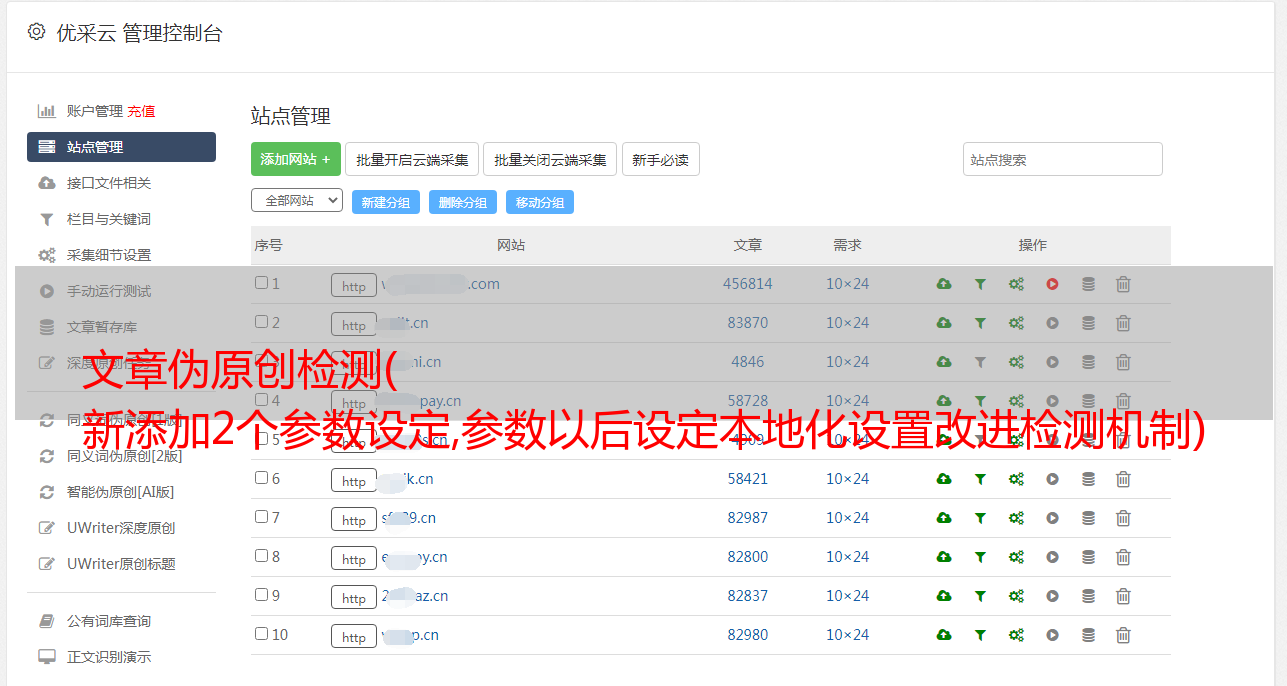 文章伪原创检测( 新添加2个参数设定,参数以后设定本地化设置改进检测机制)