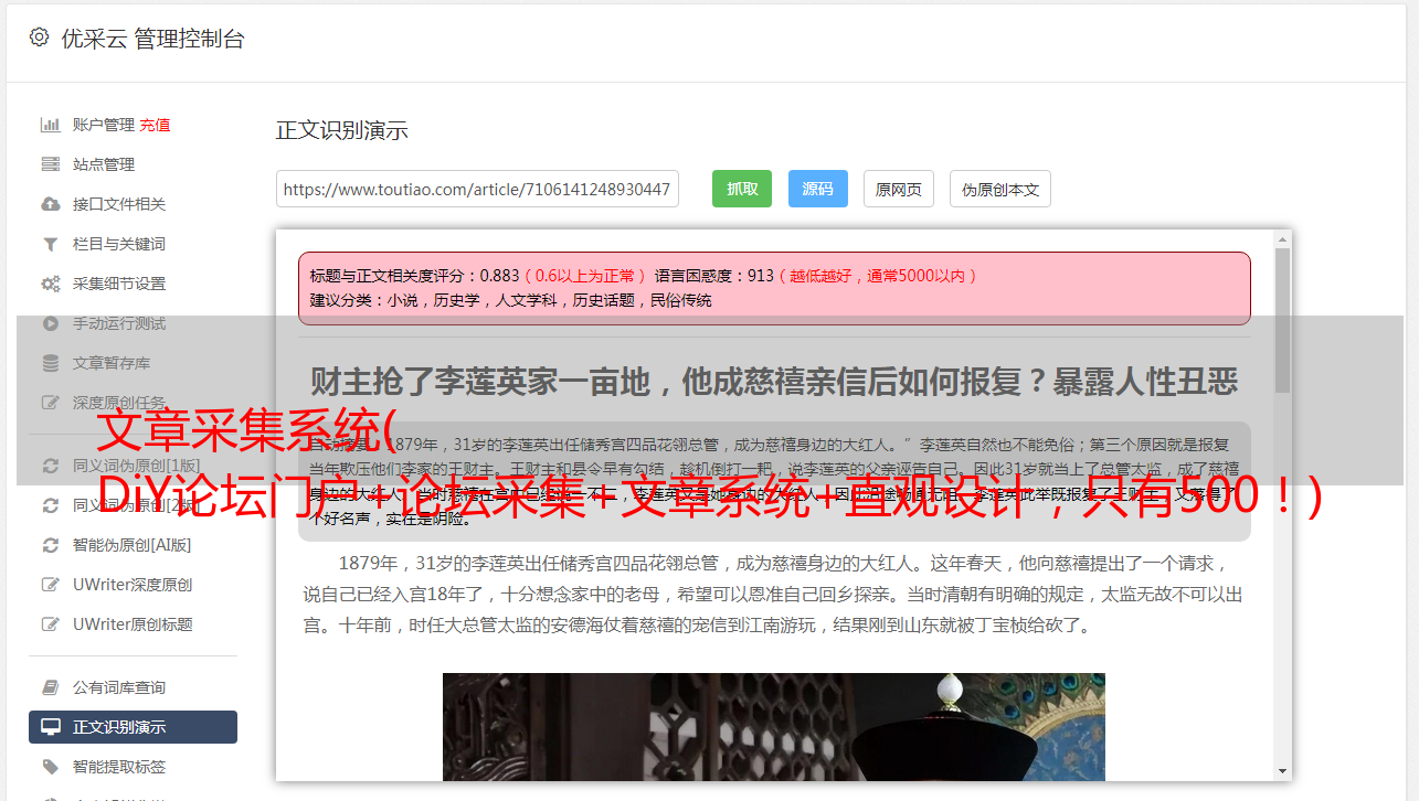 文章采集系统( DiY论坛门户+论坛采集+文章系统+直观设计,只有500!)