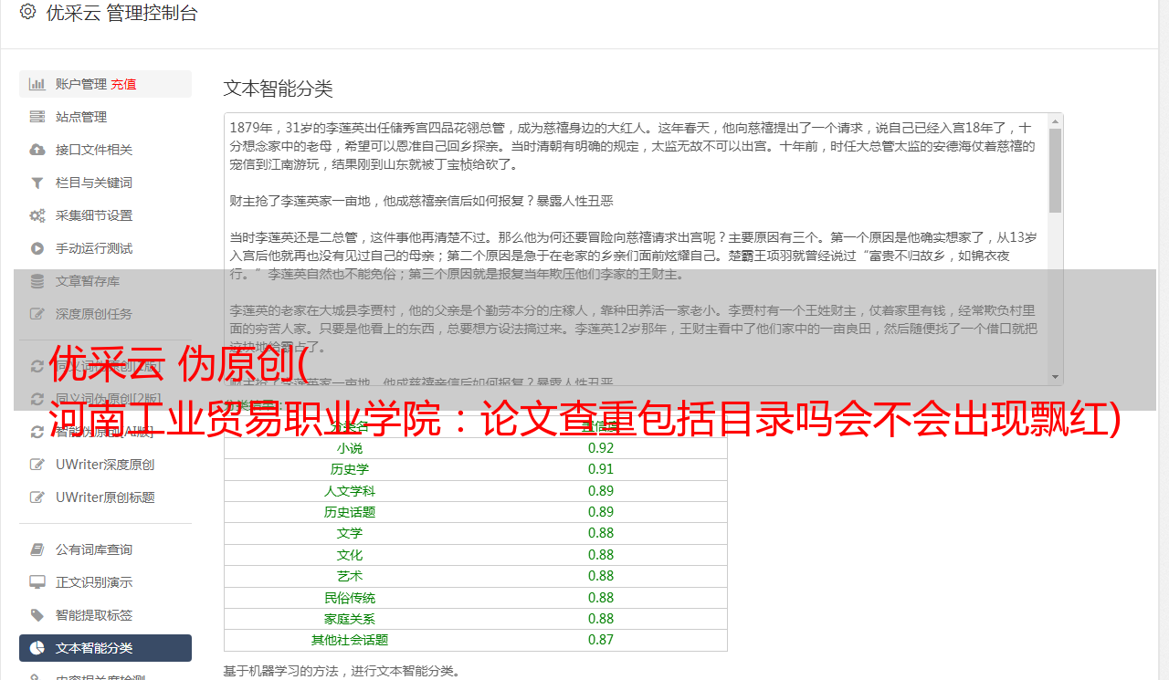 优采云 伪原创( 河南工业贸易职业学院:论文查重包括目录吗会不会出现飘红)