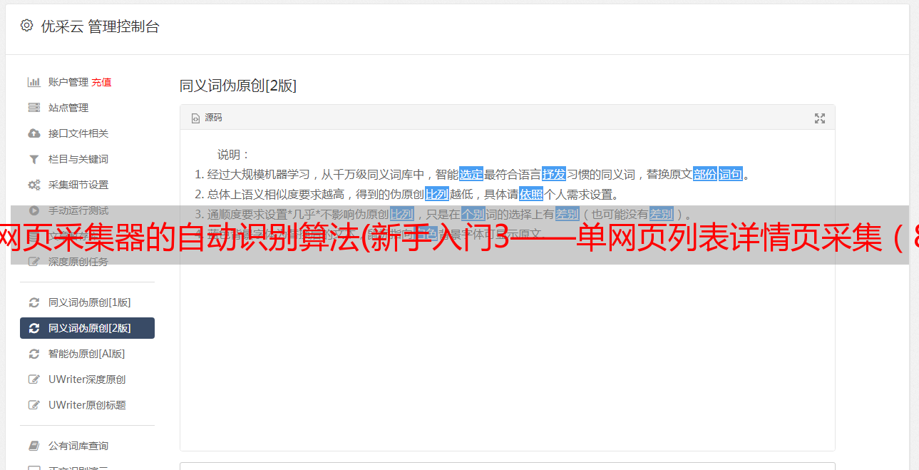 优采云 发布时间: 2021-10-03 04:17网页采集器的自动识别算法(新手入门3——单网页列表详情页采集(8.3版本)