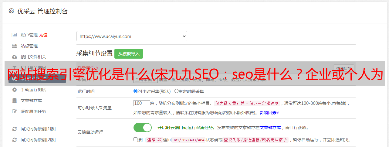 优采云 发布时间: 2021-10-03 06:00网站搜索引擎优化是什么(宋九九SEO:seo是什么?企业或个人为什么要做seo网站优化)