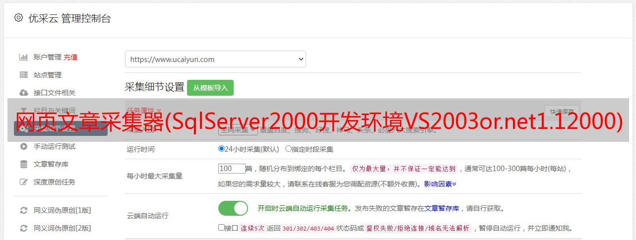 优采云 发布时间: 2021-10-03 10:19网页文章采集器(SqlServer2000开发环境VS2003or.net1.12000)