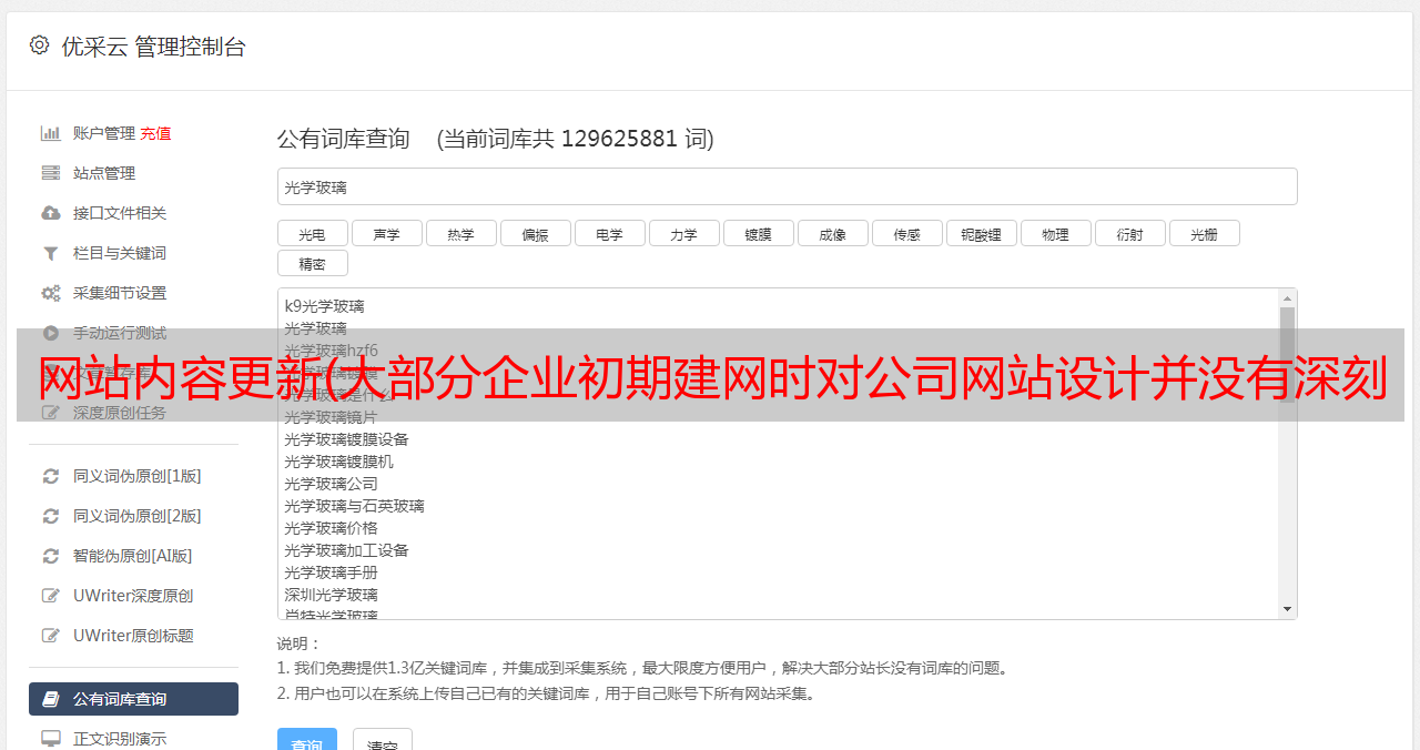 优采云 发布时间: 2021-10-03 12:03网站内容更新(大部分企业初期建网时对公司网站设计并没有深刻的认识)