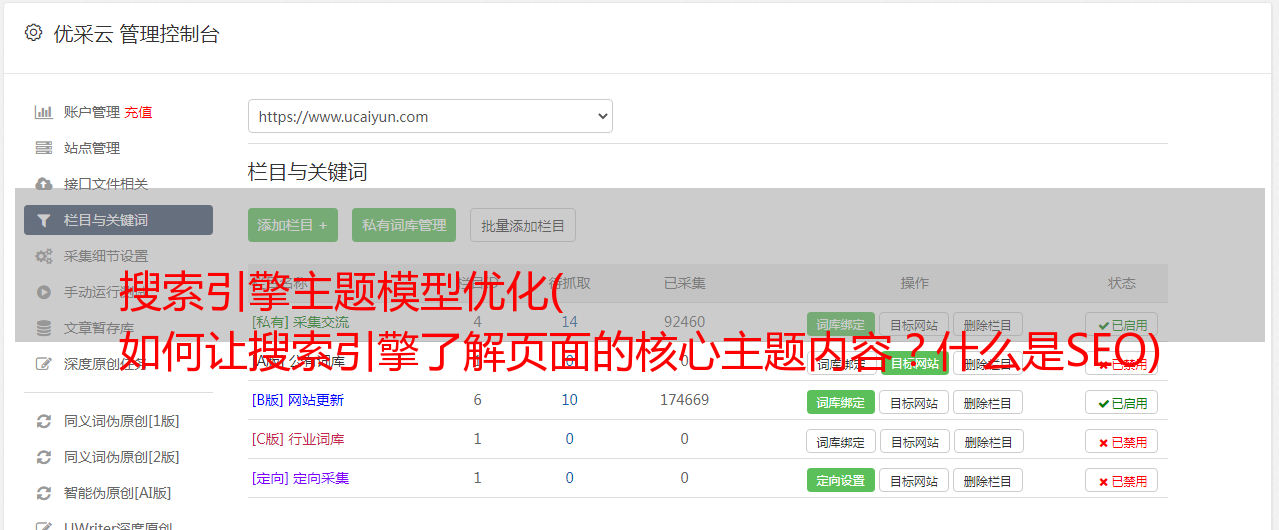优采云 发布时间: 2021-10-03 15:04搜索引擎主题模型优化(