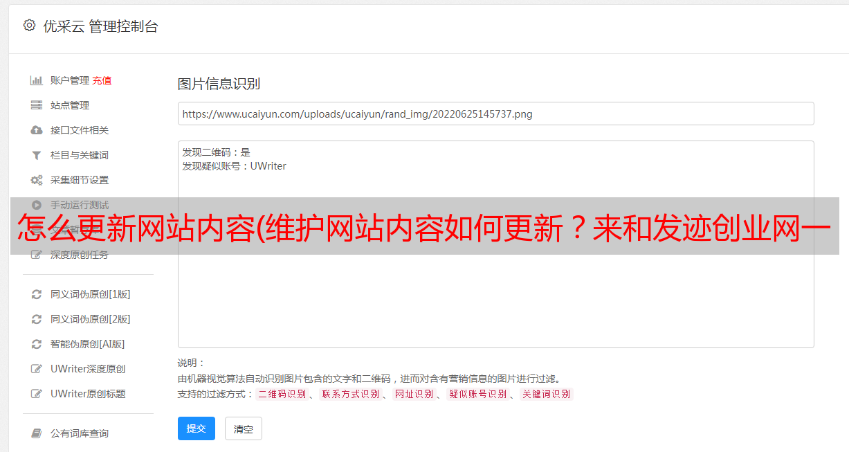 优采云 发布时间: 2021-10-04 00:13怎么更新网站内容(维护网站内容如何更新?来和发迹创业网一起看看吧)