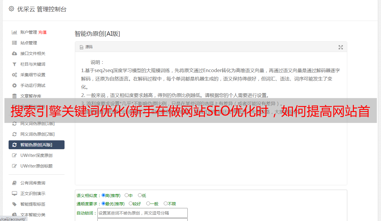优采云 发布时间: 2021-10-04 07:09搜索引擎关键词优化(新手在做网站SEO优化时,如何提高网站首页的关键词排名)