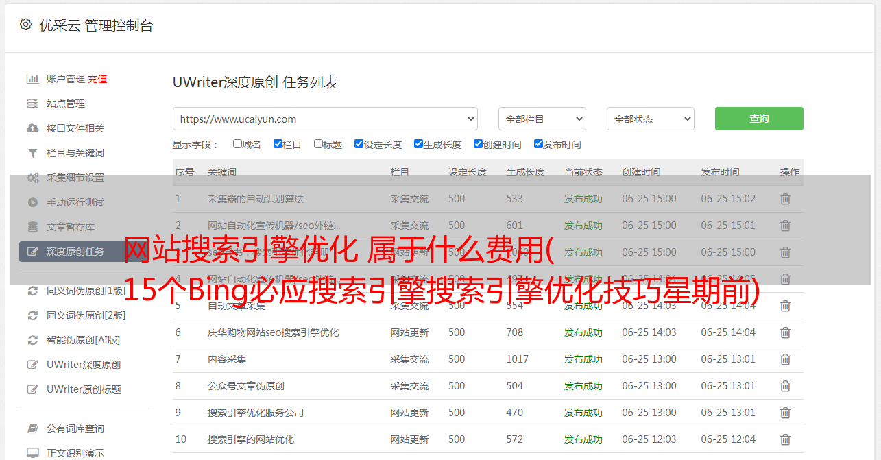 优采云 发布时间: 2021-10-05 03:03网站搜索引擎优化 属于什么费用(