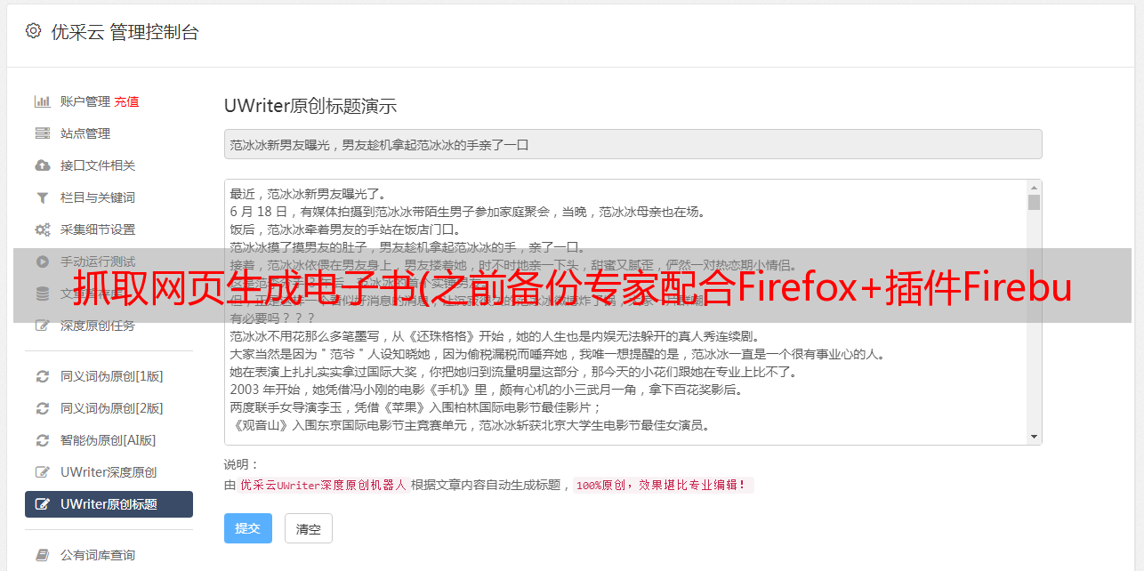 优采云 发布时间: 2021-10-05 10:09抓取网页生成电子书(之前备份专家配合Firefox+插件Firebug批量下载博客文章豆约翰博客专家)