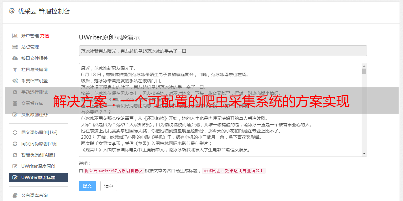 优采云 发布时间: 2020-08-30 08:01一个可配置的爬虫采集系统的方案实现
