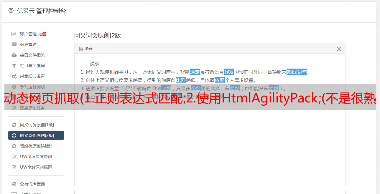 优采云 发布时间: 2021-10-05 23:08动态网页抓取(1.正则表达式匹配;2.使用HtmlAgilityPack;(不是很熟悉)