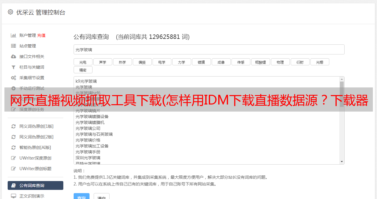 优采云 发布时间: 2021-10-06 04:13网页直播视频抓取工具下载(怎样用IDM下载直播数据源?下载器怎么下载?)