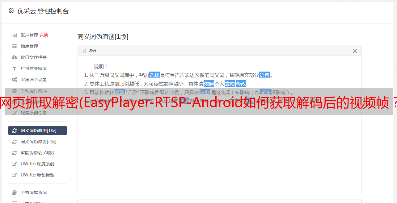 优采云 发布时间: 2021-10-06 06:28网页抓取解密(EasyPlayer-RTSP-Android如何获取解码后的视频帧?