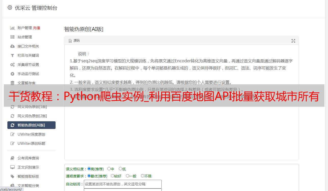 优采云 发布时间: 2020-08-30 21:12Python采集器示例_使用百度地图API批量获取城市的所有POI点