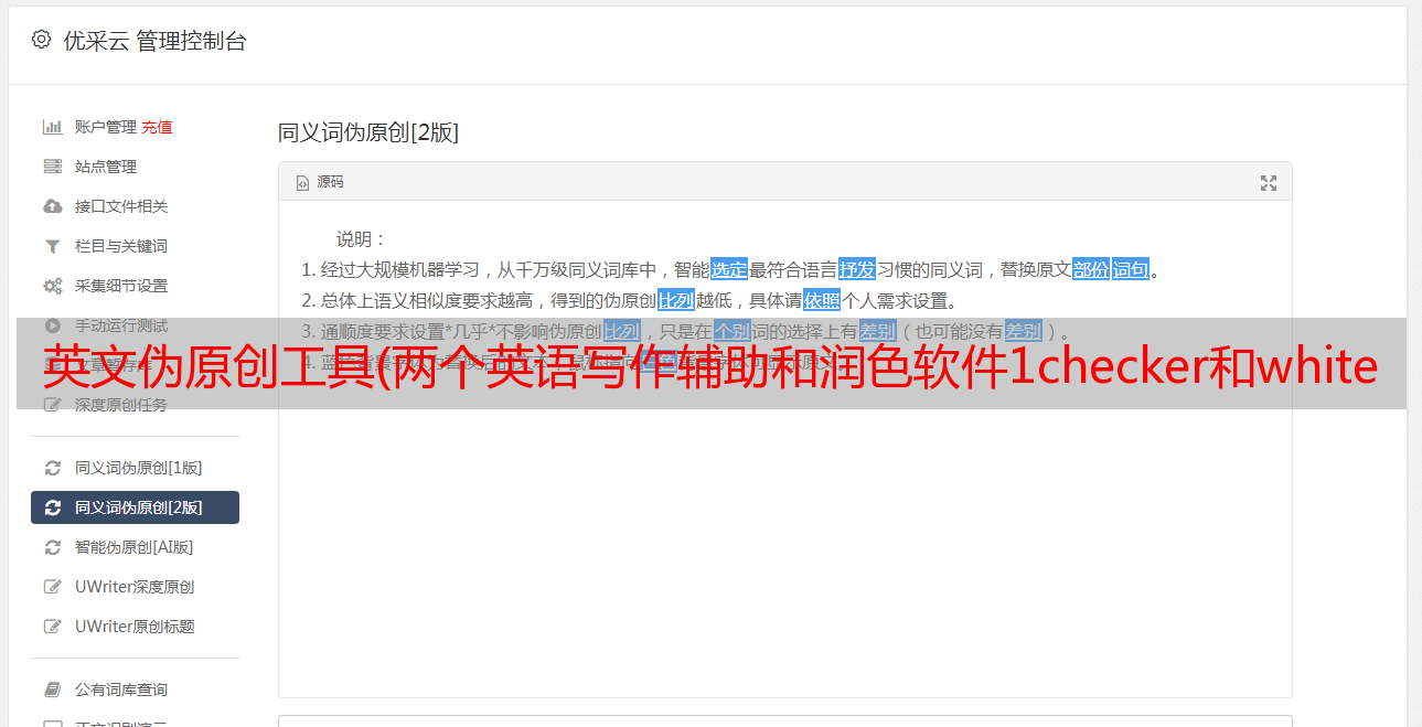 优采云 发布时间: 2021-10-06 13:17英文伪原创工具(两个英语写作辅助和润色软件1checker和whiteSmoke软件破解)