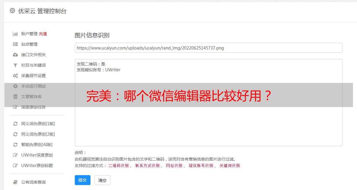 Yiban的文章采集功能非常强大. 输入采集文章的地址,以一键导入图像和文本,并保持原创格式.