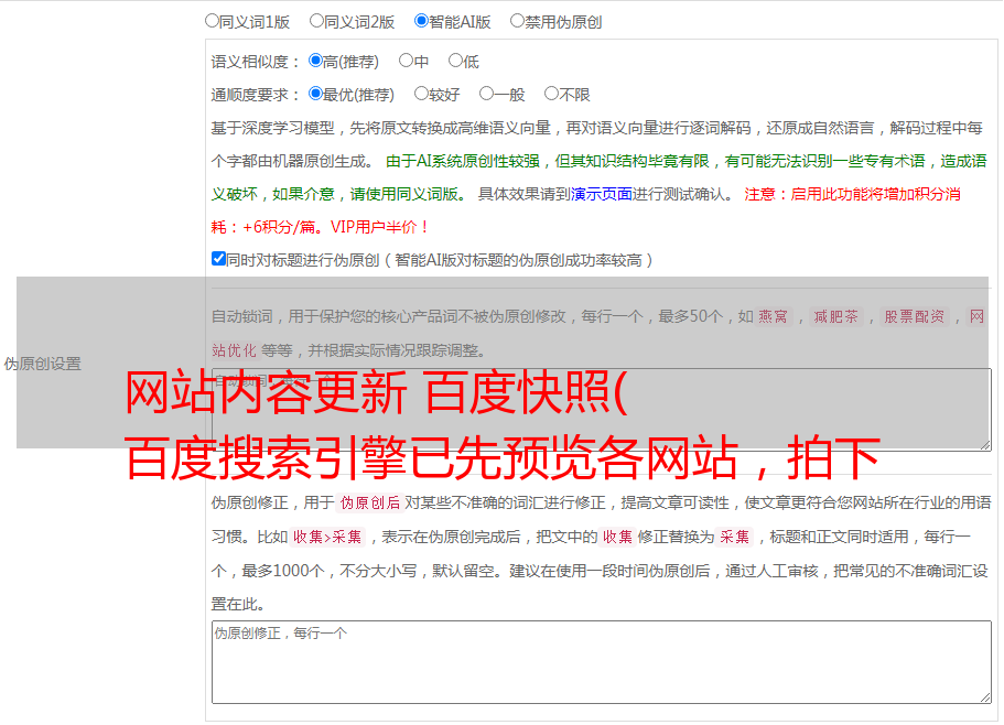 总而言之,网站的快照更新取决于网站本身的更新,但是对于一个新站点,或者之前很久没有更新的网站,这将需要一段时间的定期更新。这样快照时间可以跟上网站的更新。另外,网站的权重(PR值、外链、收录数量)高的网站,即使更新少,快照更新也更频繁。