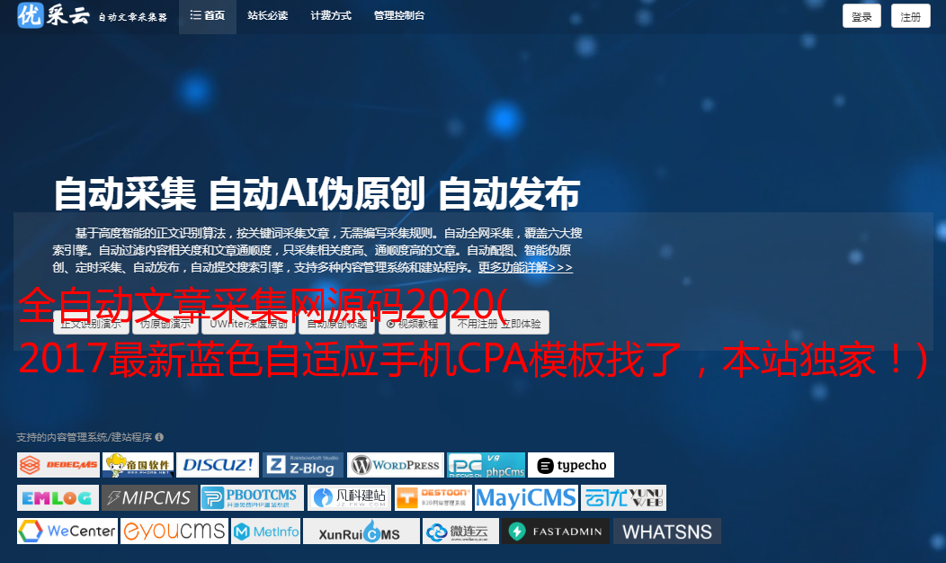 全自动文章采集网源码2020( 2017最新蓝色自适应手机CPA模板找了,本站独家!)