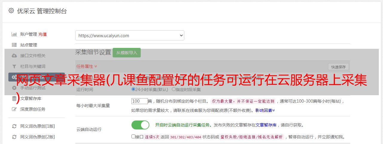 网页文章采集器(几课鱼配置好的任务可运行在云服务器上采集 )