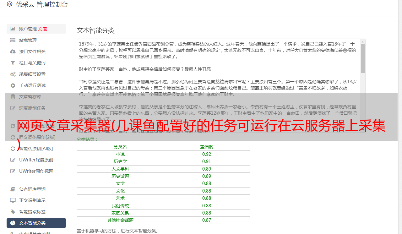 优采云 发布时间: 2021-10-07 12:16网页文章采集器(几课鱼配置好的任务可运行在云服务器上采集