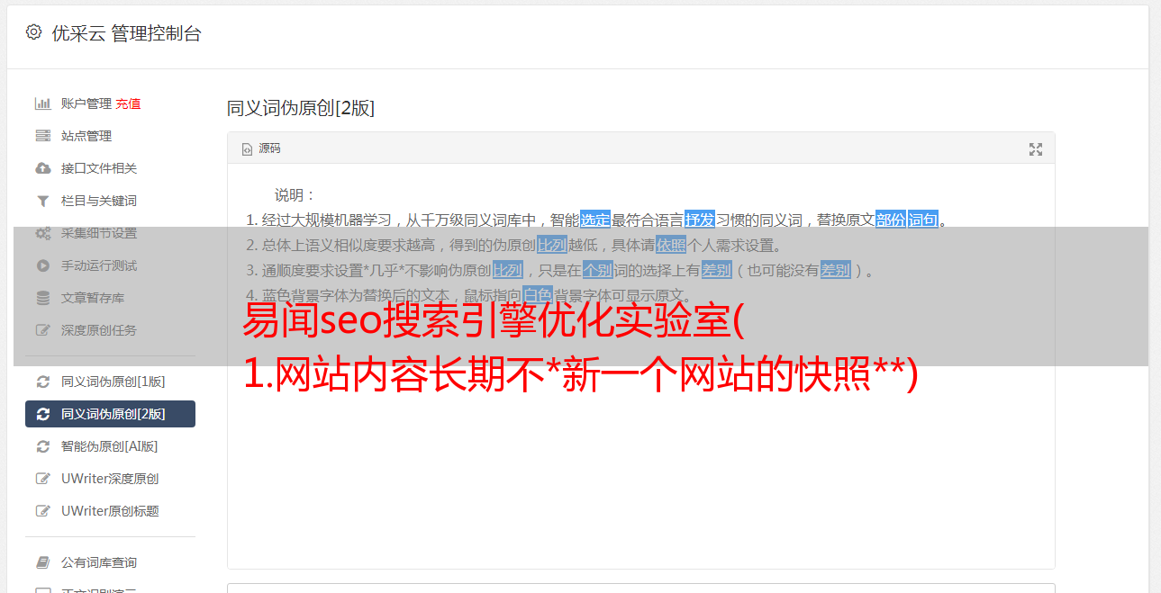 易闻seo搜索引擎优化实验室( 1.网站内容长期不*新一个网站的快照**)