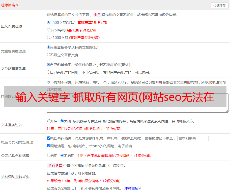 输入关键字 抓取所有网页(网站seo无法在首页上列出的原因有哪些?影响因素)