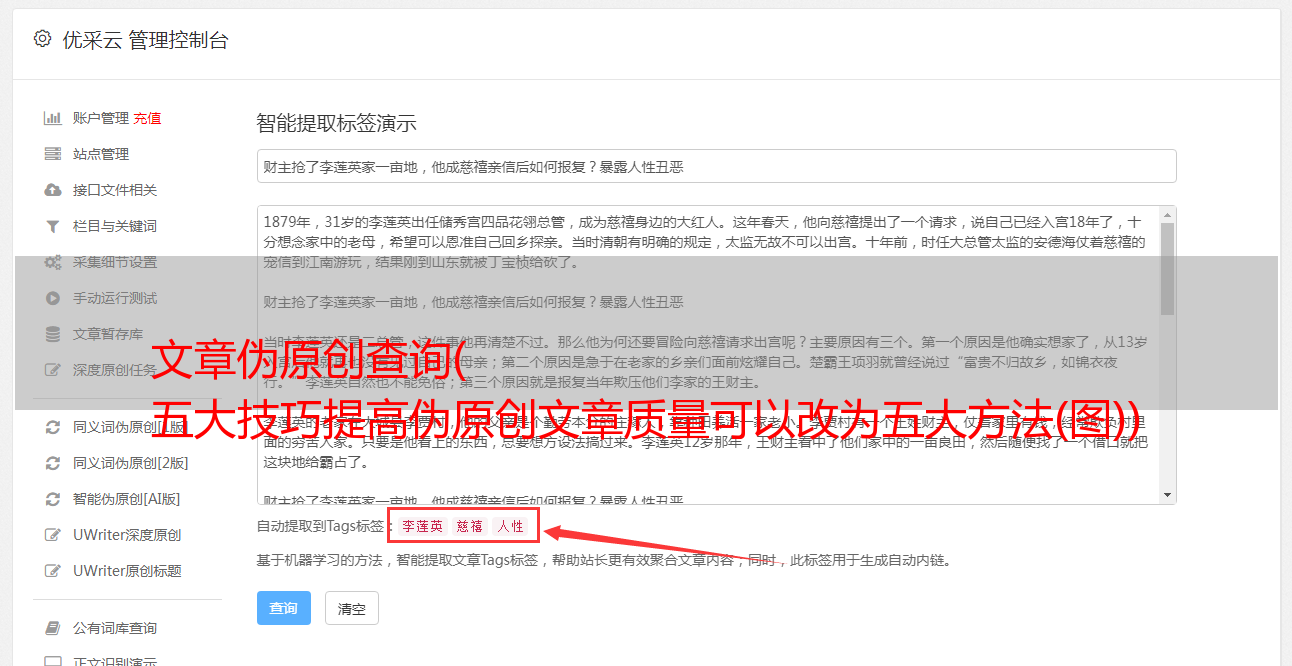 优采云 发布时间: 2021-10-09 05:11文章伪原创查询(