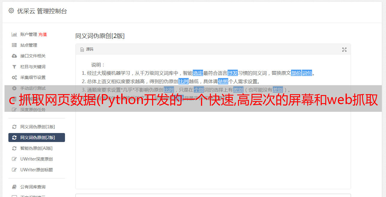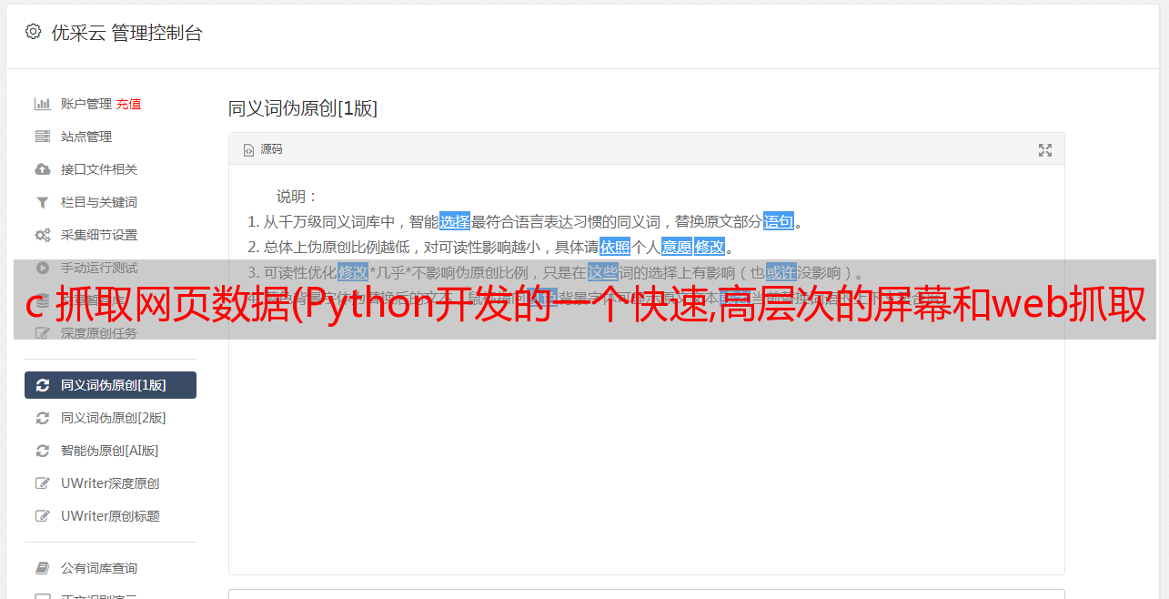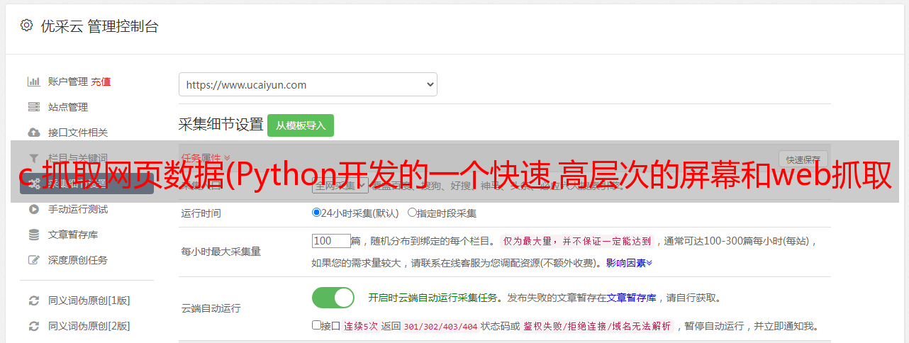 优采云 发布时间: 2021-10-10 06:08c 抓取网页数据(Python开发的一个快速,高层次的屏幕和web抓取框架(组图))