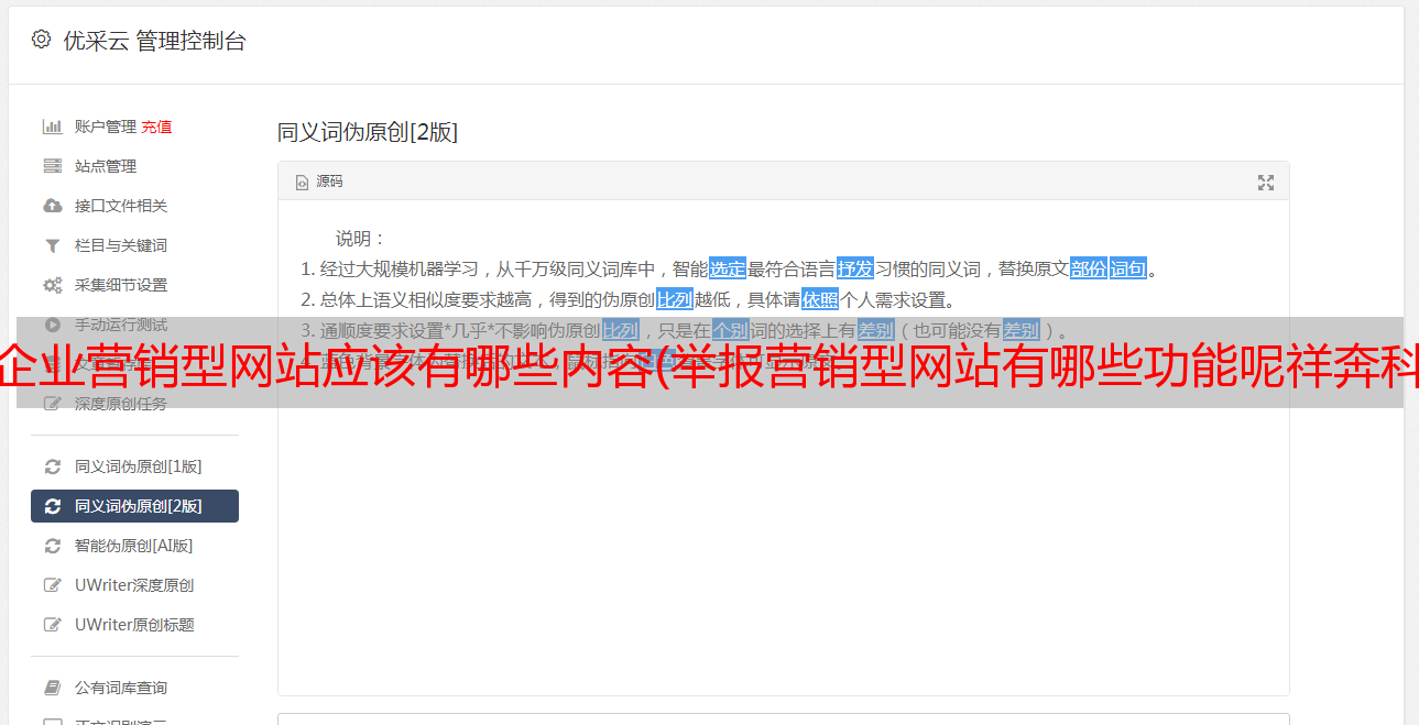 优采云 发布时间: 2021-10-10 09:36企业营销型网站应该有哪些内容(举报营销型网站有哪些功能呢祥奔科技网站建设null)