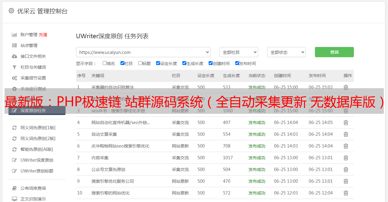 优采云 发布时间: 2020-09-04 10:38PHP快速链站群源代码系统(不带数据库版本的全自动采集更新)