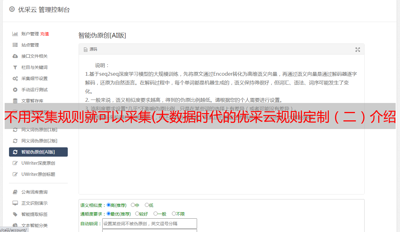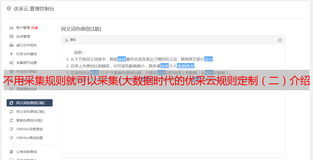 不用采集规则就可以采集(大数据时代的优采云规则定制(二)介绍及应用 )
