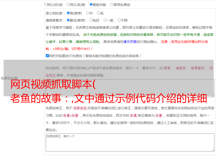 网页视频抓取脚本( 老鱼的故事:,文中通过示例代码介绍的详细介绍)