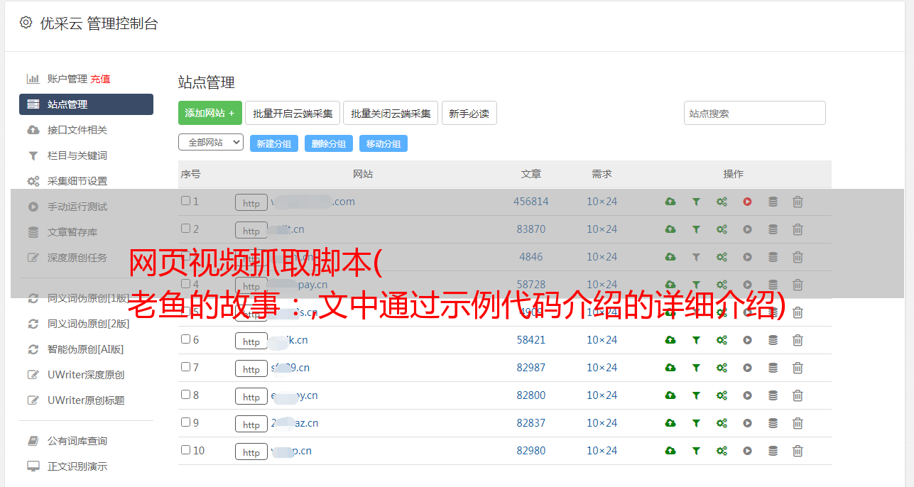 优采云 发布时间: 2021-10-11 02:25网页视频抓取脚本(