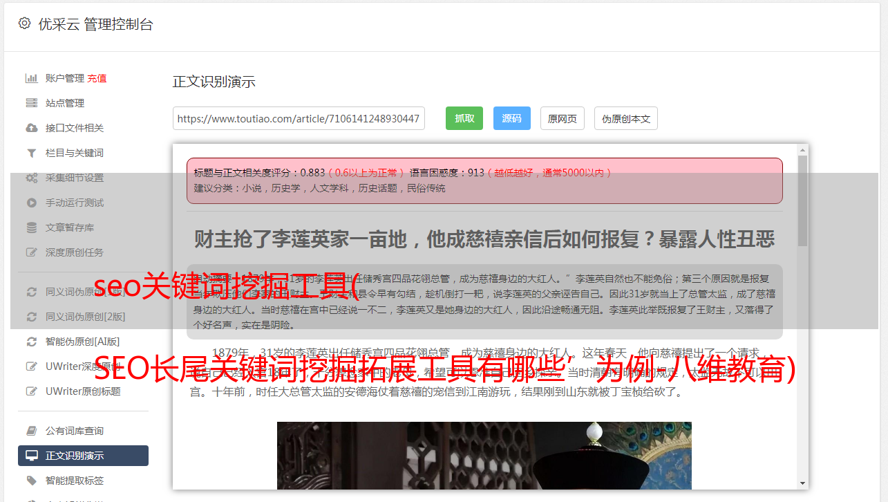 经过seo布局工具的上述三步,我已经确定标题应该收录两个长尾关键词'关键词挖掘工具'和'长尾关键词挖掘'。